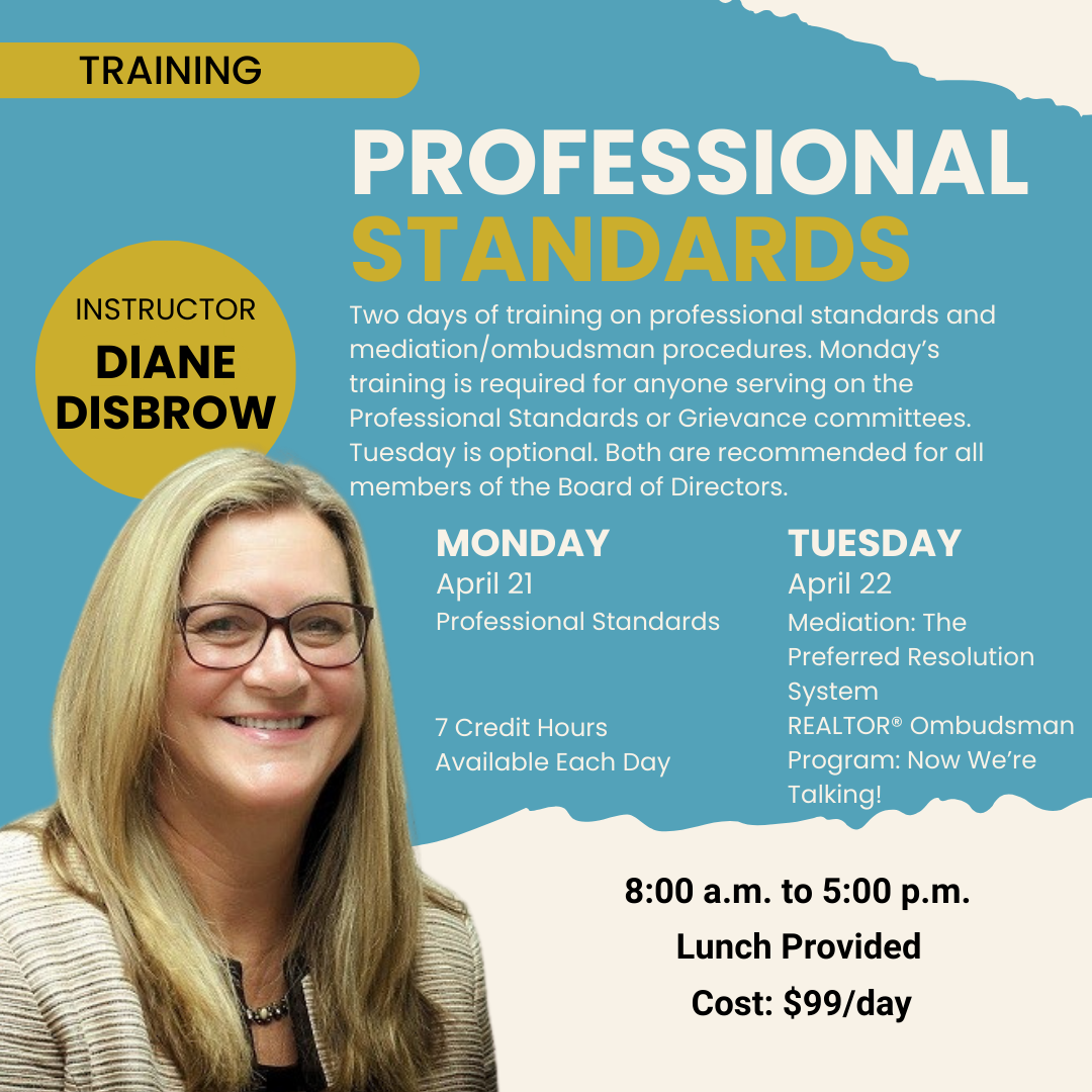 Instructed by Diane Disbrow. This class counts for 7 CE Credits. This is a required course for anyone serving on the Professional Standards or Grievance committees.